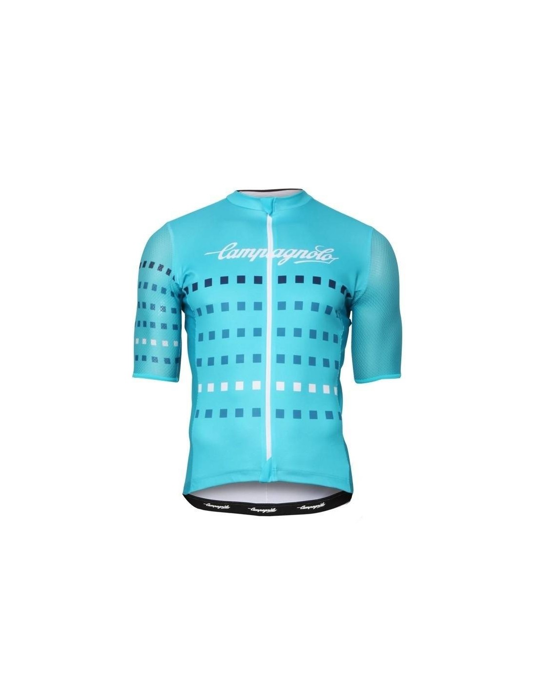 El maillot de la equipación Campagnolo también destaca por sus características innovadoras:- Material: Fabricado en 100% poliéster, garantiza un secado rápido y evita que se adhiera a la piel, incluso en condiciones de sudoración extrema.