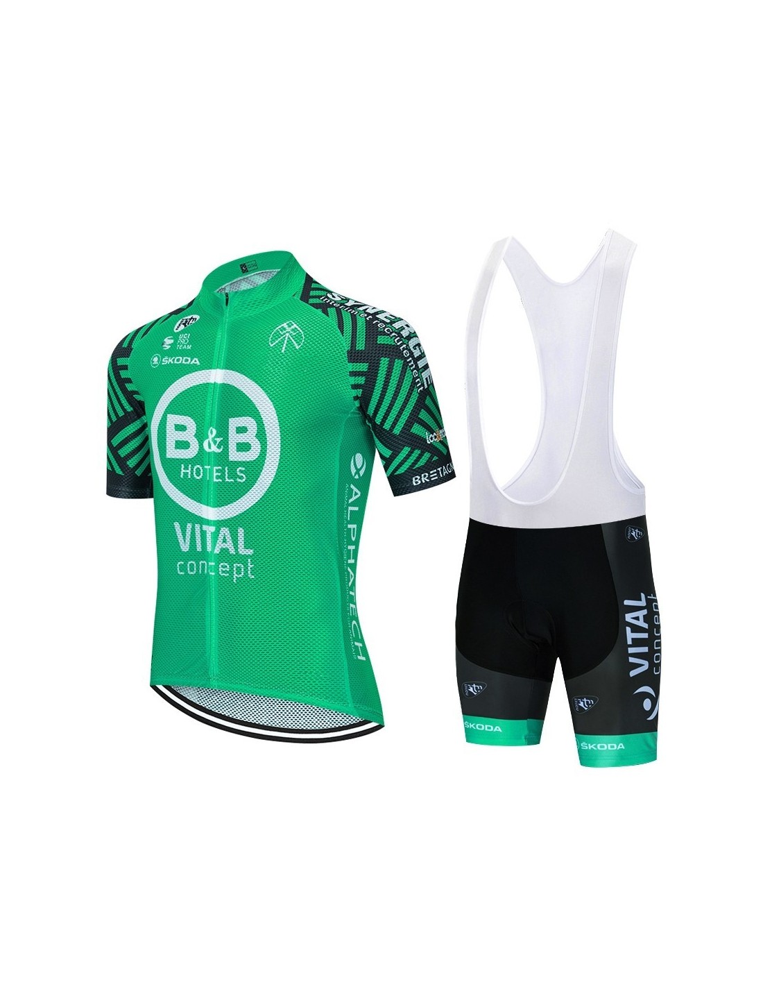 El conjunto de ciclismo B&B Vital está fabricado con materiales de primera calidad que aseguran comodidad y rendimiento:- **Culote**: Compuesto por un 80% de poliéster y un 20% de lycra, este culote cuenta con un sistema Coolmax que mantiene la badana pegada a la piel, evitando deslizamientos.- **Maillot**: Hecho 100% de poliéster, el maillot es ligero y transpirable, ideal para mantenerte fresco durante los días calurosos.Comodidad y Funcionalidad