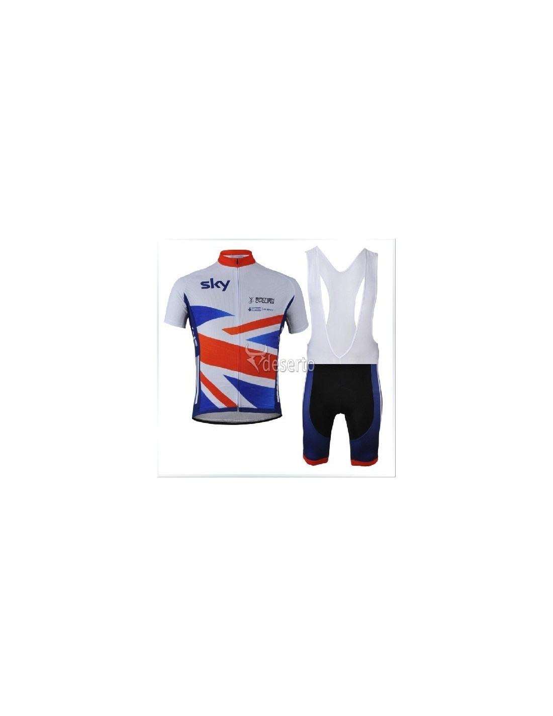 La calidad de los materiales en la equipación es esencial para un rendimiento óptimo. La equipación corta British-Sky está fabricada con:- **Culote**: 80% Poliéster y 20% Lycra. - Gracias al sistema *Coolmax*, la badana se mantiene completamente pegada a la piel, evitando desplazamientos. - Un tratamiento especial anti-bacterias y anti-microbios asegura que no habrá malos olores, incluso después de largas horas de sudoración. - Las zonas de gel proporcionan una comodidad excepcional al estar sentado en el sillín. - Fabricado en varias piezas con un corte anatómico que se ajusta perfectamente al ciclista.- **Maillot**: 100% Poliéster. - Incluye tres bolsillos traseros para artículos esenciales. - Diseño exclusivo con cremallera completa tipo chaqueta. - Mantiene la frescura y ventilación en condiciones de calor extremo y regula la temperatura corporal en climas fríos. - Su función de secado rápido evita que el maillot se adhiera a la piel durante el ejercicio.Comodidad y Funcionalidad