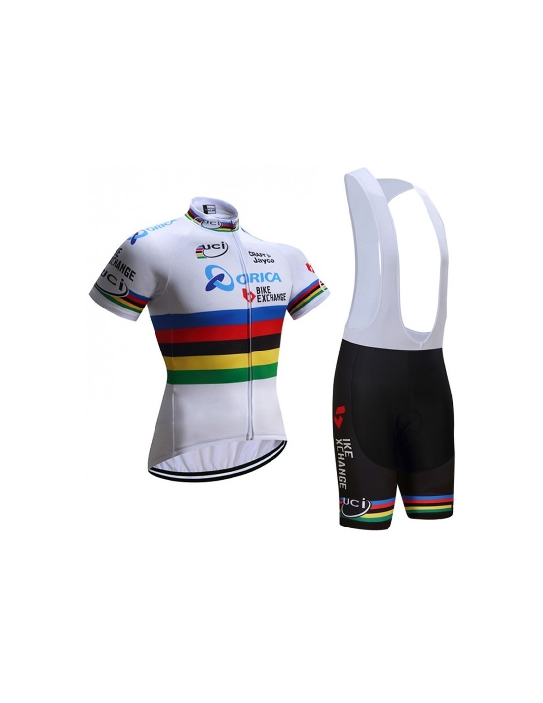 La equipación de ciclismo Orica está diseñada para ofrecer la máxima comodidad durante tus recorridos. Culote:- **80% Polyester y 20% Lycra**: Estos materiales aseguran que el culote se ajuste perfectamente a tu cuerpo, proporcionando libertad de movimiento.- **Sistema Coolmax**: Gracias a este innovador sistema, la badana se mantiene pegada a la piel, evitando cualquier tipo de desplazamiento.- **Tratamiento Antibacteriano**: Este tratamiento especial impide la formación de olores, incluso durante largas horas de sudoración, manteniéndote fresco y seco.Maillot:- **100% Polyester**: Este material es ideal para mantenerte ventilado en condiciones de calor extremo.- **Cremallera Completa**: Facilita la puesta y el retiro del maillot, además de permitir una ventilación adicional cuando lo necesites.- **Tres Bolsillos Traseros**: Perfectos para guardar botellas de agua y otros objetos esenciales durante tus paseos.Comodidad y Diseño