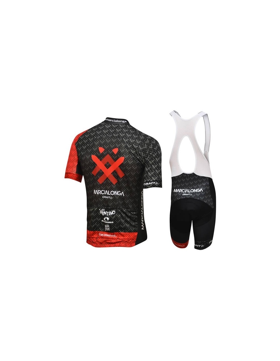 El maillot de la equipación Craft también está fabricado con **100% poliéster** y cuenta con características que mejoran la experiencia de ciclismo:- Tres bolsillos traseros para almacenar pequeños objetos.