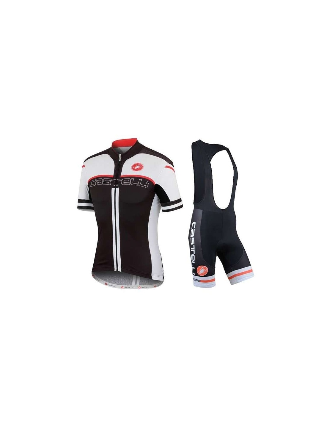 El diseño de la equipación Castelli no se limita solo a la estética:- **Maillot**: Cuenta con tres bolsillos traseros, ideal para llevar botellas de agua o pequeños objetos.- **Cremallera Completa**: Facilita el uso y mejora la ventilación.- **Secado Rápido**: Mantiene la piel fresca y evita la adherencia, incluso en días calurosos.El estampado de alta calidad asegura que tu equipación mantenga su apariencia a través de múltiples lavados.¿Por qué Elegir la Equipación de Ciclismo Castelli?
