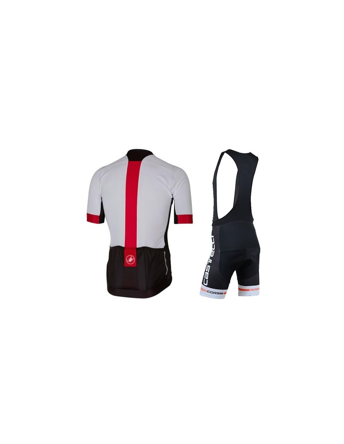 El maillot de Castelli también tiene características destacables, incluyendo:- Diseño exclusivo: Con tres bolsillos traseros y una cremallera completa tipo chaqueta.
