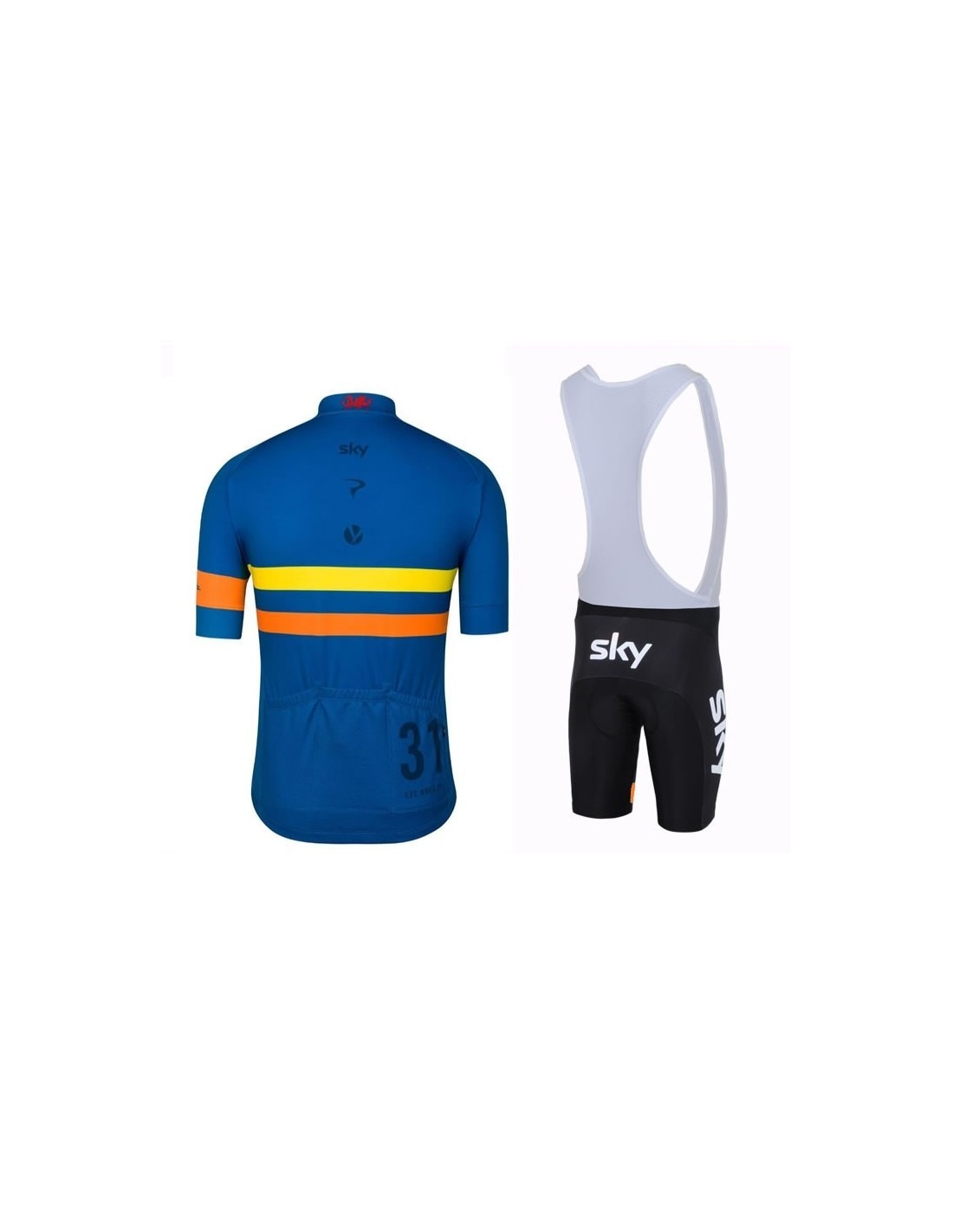 El maillot de la equipación SKY está hecho de 100% poliéster, lo que garantiza una transpirabilidad excepcional. Sus características principales incluyen:- Tres bolsillos traseros: Ideales para llevar botellas de agua y otros artículos esenciales.