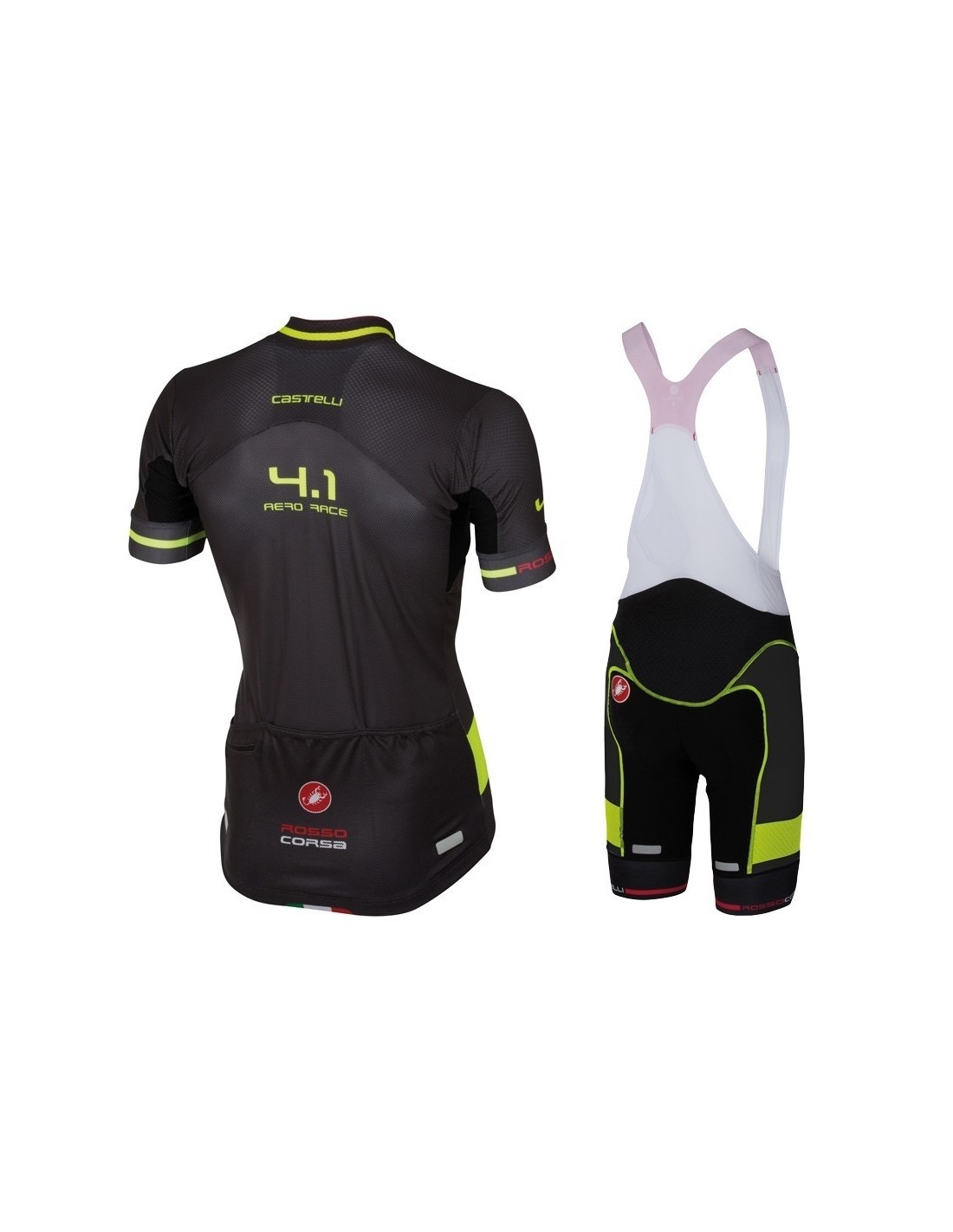 El conjunto corto está fabricado en varias piezas con un *corte anatómico*, lo que permite un ajuste perfecto al cuerpo del ciclista. Este diseño no solo mejora la estética, sino que también optimiza la funcionalidad del equipo. Las zonas de gel en el culote proporcionan una comodidad adicional al sentarse en el sillín.El maillot, por su parte, cuenta con:- Tres bolsillos traseros para almacenar artículos esenciales.- Cremallera completa tipo chaqueta para mayor versatilidad.- Un diseño que mantiene la frescura y ventilación en condiciones de calor extremo.Ventajas de la Equipación Castelli