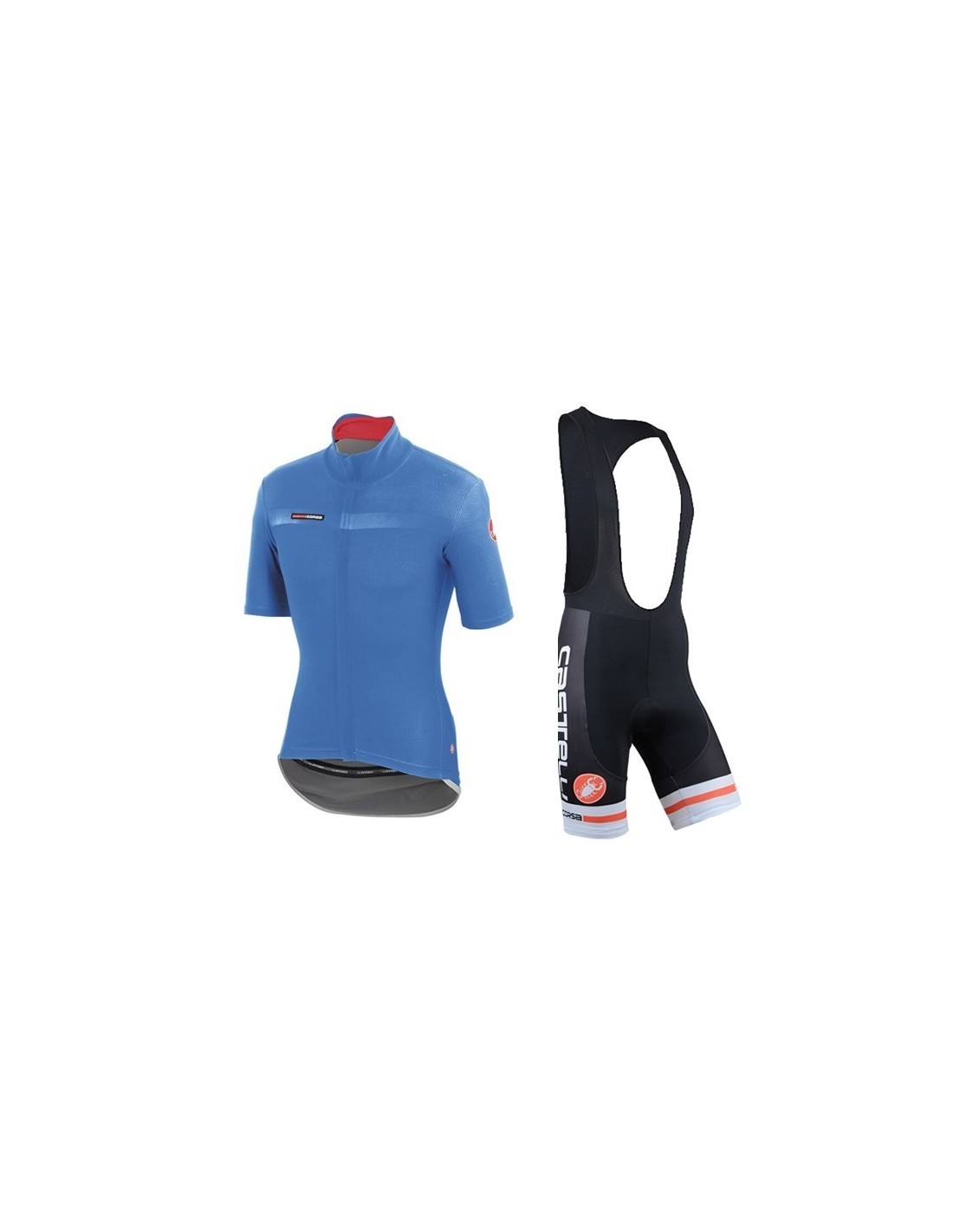 La equipación de ciclismo Castelli se compone de un conjunto corto que incluye un **culote** y un **maillot**, fabricados con materiales que garantizan durabilidad y comodidad.- Culote: 80% poliéster y 20% lycra.