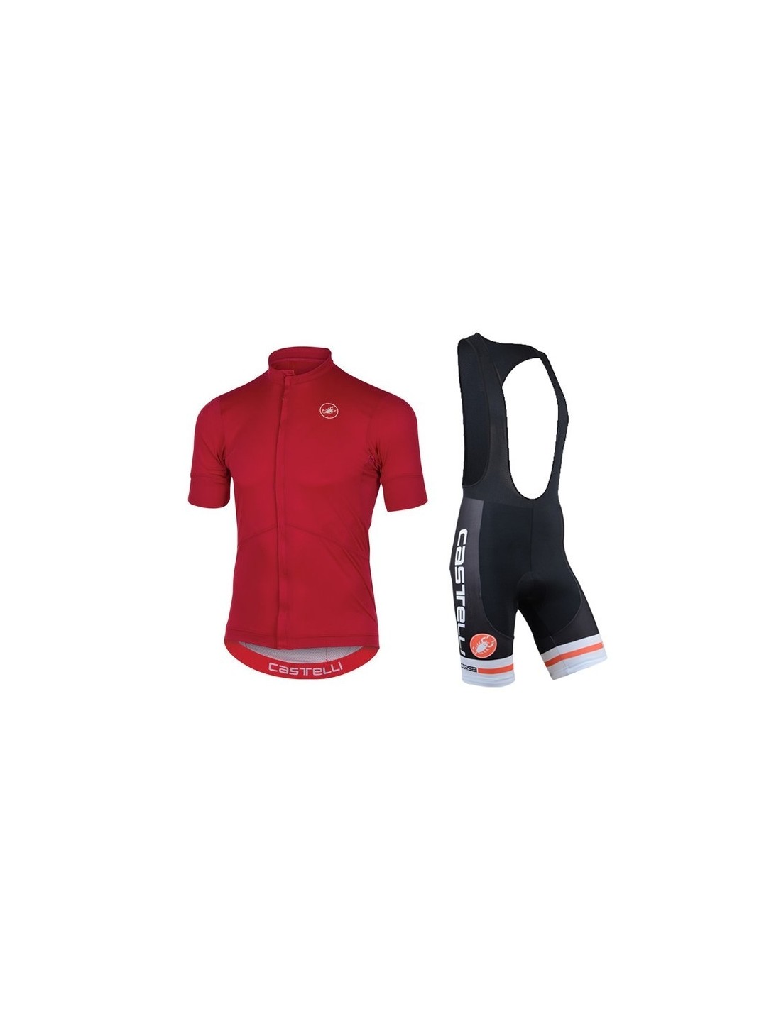El culote corto de Castelli está diseñado anatómicamente, lo que significa que se adapta a la forma del cuerpo del ciclista, asegurando una gran libertad de movimiento. Además, las zonas de gel incluidas en el culote proporcionan un extra de comodidad al estar sentado en el sillín. El maillot, por su parte, está hecho de **100% poliéster** y cuenta con un diseño exclusivo, con una cremallera completa tipo chaqueta que facilita su uso y ajuste.Ventajas de la Equipación de Ciclismo Castelli