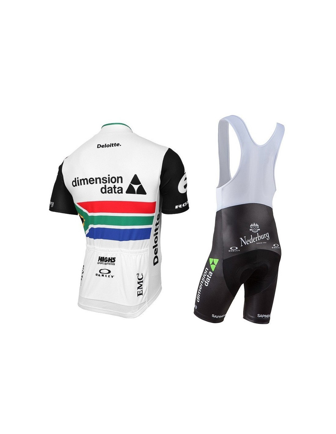 El conjunto corto de ciclismo Dimension Data está diseñado con materiales que garantizan durabilidad y confort. - **Culote**: Confeccionado en un 80% de poliéster y un 20% de lycra, el culote presenta un sistema **Coolmax** que asegura que la badana se mantenga ajustada a la piel, evitando cualquier tipo de desplazamiento. Además, cuenta con un tratamiento especial que es **antibacteriano y antimicrobiano**, lo que significa que no generará olores desagradables, incluso después de largas horas de uso. Esta equipación te mantendrá seco y cómodo durante tus entrenamientos.- **Maillot**: Hecho 100% de poliéster, el maillot incluye tres bolsillos traseros y un diseño exclusivo con una cremallera completa tipo chaqueta. Su estructura permite que se mantenga fresco y ventilado en condiciones de calor extremo, mientras que en frío ayuda a regular la temperatura corporal. Además, su función de secado rápido evita que el tejido se adhiera a la piel, brindando comodidad en cualquier situación.Diseño y Ajuste
