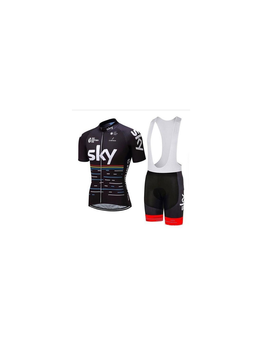 La equipación de ciclismo SKY se compone de un culote y un maillot, ambos fabricados con materiales de alta calidad que garantizan durabilidad y confort.Culote