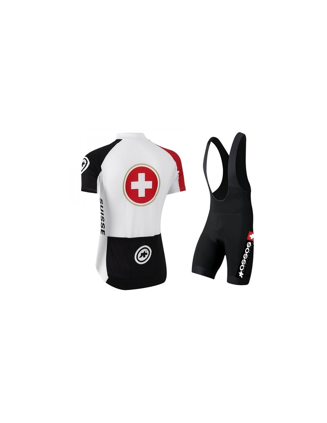 El maillot que acompaña al culote Assos está confeccionado en **100% poliéster** y presenta un diseño exclusivo. Cuenta con tres bolsillos traseros, ideales para llevar contigo botellas de agua o pequeños artículos esenciales durante tus paseos. Su cremallera completa tipo chaqueta facilita el ajuste y la ventilación, manteniéndote fresco incluso en climas extremos.Este maillot no solo es funcional, sino que también es estéticamente atractivo. Su alta calidad en el estampado asegura que se mantenga en perfectas condiciones a pesar de múltiples lavados, lo que lo convierte en una inversión duradera para cualquier ciclista.Por Qué Elegir el Conjunto Corto de Ciclismo Assos