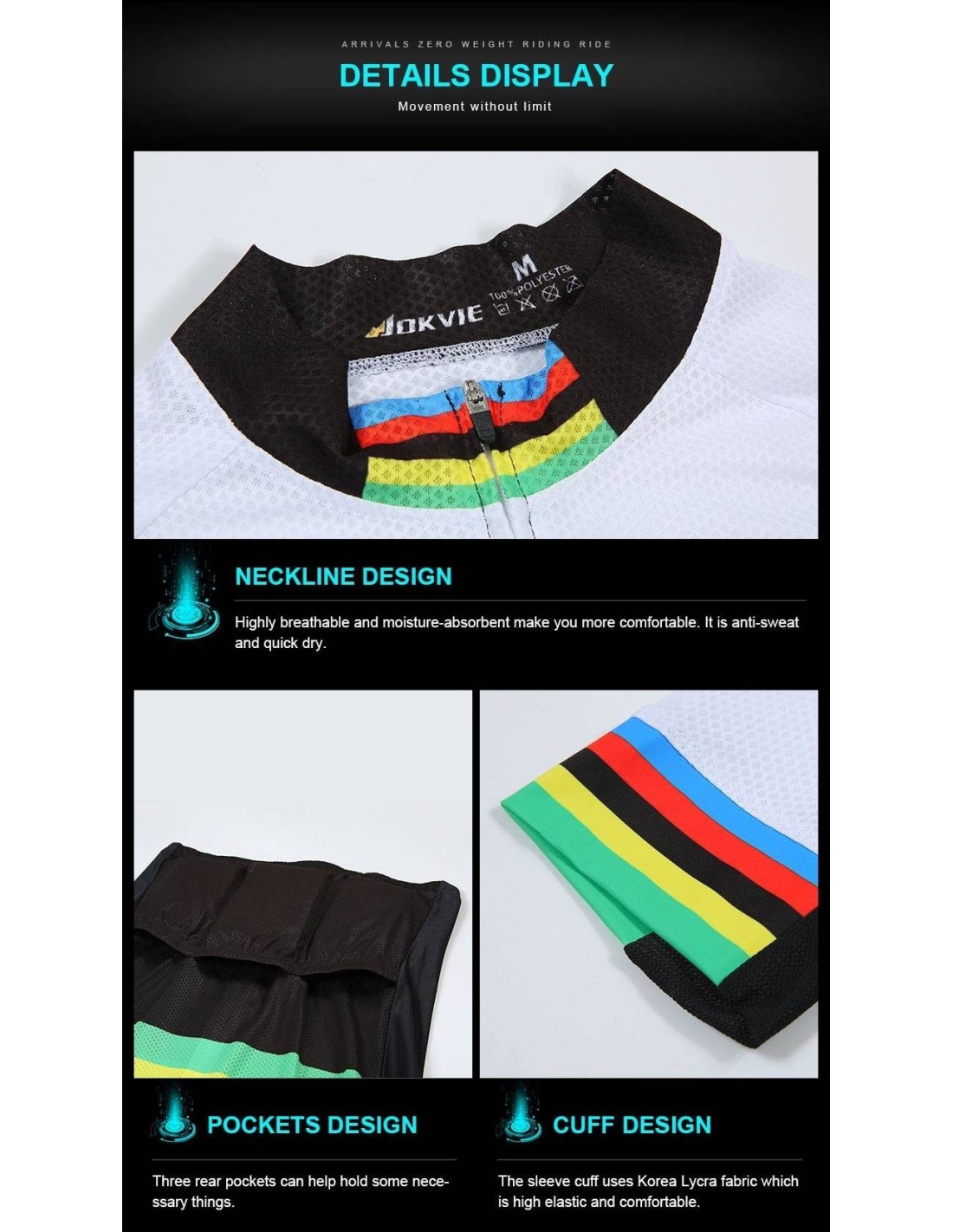 El maillot del conjunto Jokvie no solo es funcional, sino que también presenta un diseño exclusivo que se adapta perfectamente al ciclista. Su capacidad de secado rápido permite que el maillot no se adhiera a la piel, incluso en condiciones de sudor extremo. Esto es esencial para mantener la temperatura corporal adecuada durante los paseos en climas cálidos y fríos.El estampado de alta calidad asegura que el conjunto mantenga su aspecto original incluso después de múltiples lavados, lo que lo convierte en una inversión a largo plazo.¿Por qué Elegir el Conjunto Corto de Ciclismo Jokvie?