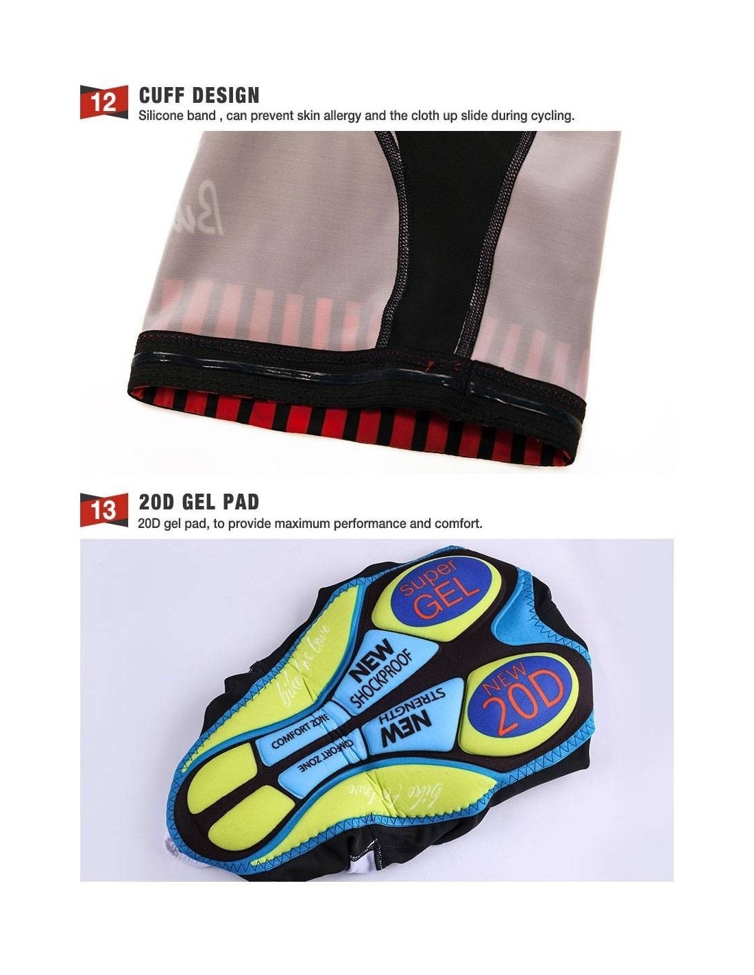 - Las zonas de gel en el culote garantizan una experiencia cómoda al estar sentado en el sillín.