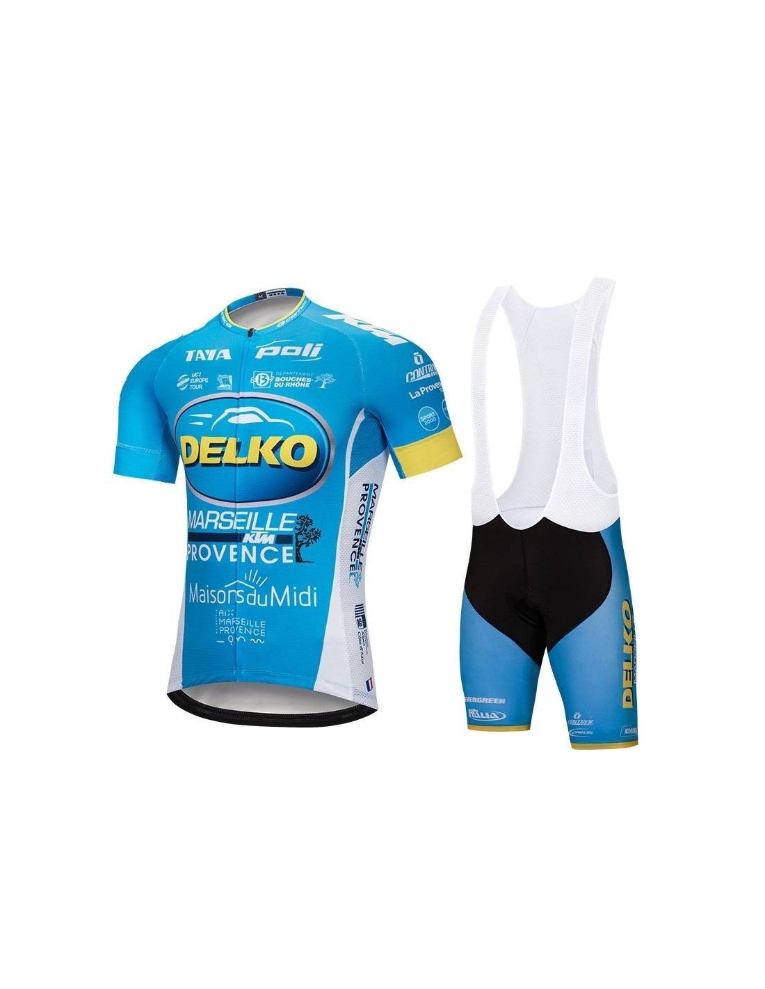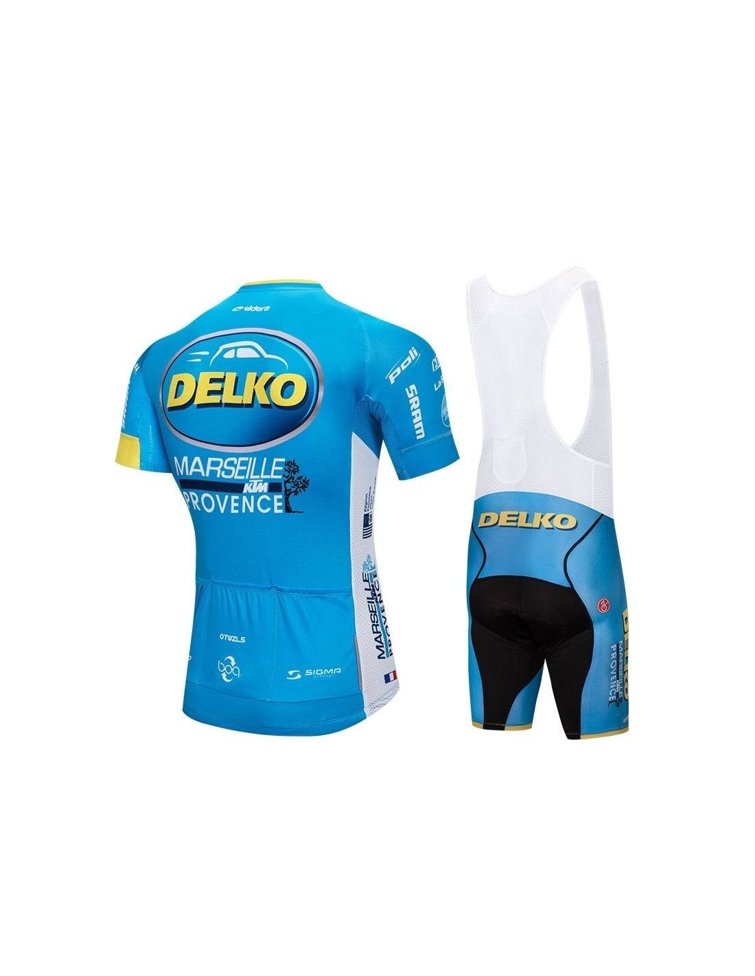 El maillot del conjunto DELKO está fabricado en 100% poliéster, lo que lo hace ligero y transpirable. Algunas de sus características destacadas incluyen:- Diseño Práctico: Cuenta con tres bolsillos traseros para llevar botellas de agua u otros artículos esenciales.
