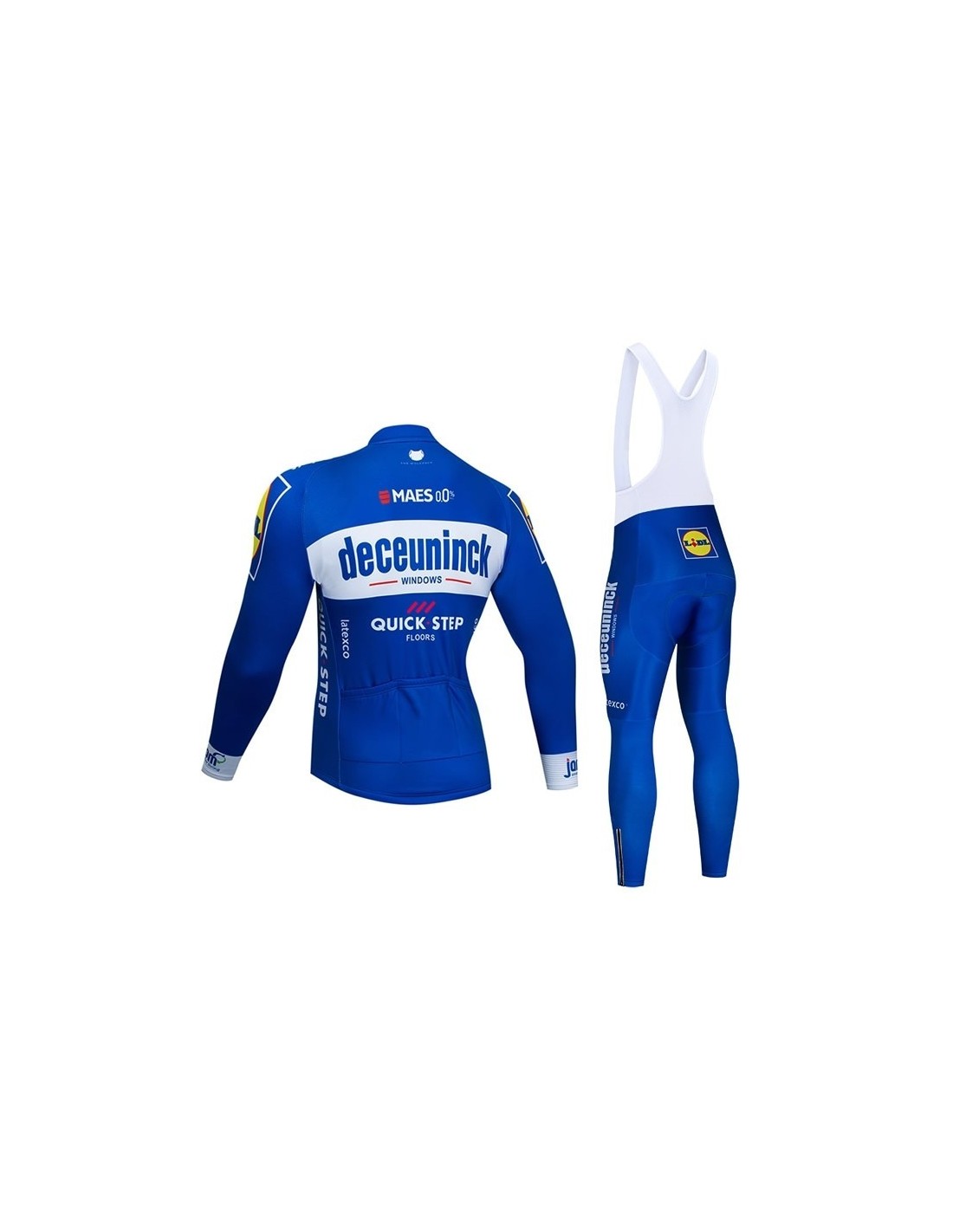 Uno de los aspectos más importantes de cualquier equipación de ciclismo es el material. La equipación térmica Quick Step cuenta con:- **Culotte**: 80% poliéster y 20% lycra. Gracias al sistema Coolmax, la badana se adhiere perfectamente a la piel, evitando cualquier tipo de movimiento incómodo.- **Maillot**: 100% poliéster, que incluye características como una cremallera completa y tres bolsillos traseros.Ventajas del Material- **Antibacteriano**: El tratamiento especial asegura que no se produzcan olores, incluso tras largas horas de sudoración.- **Transpirabilidad**: Permite que la piel respire, manteniéndola seca y cómoda durante el ejercicio.- **Durabilidad**: Los estampados de alta calidad se mantienen intactos tras múltiples lavados, garantizando una larga vida útil.Diseño y Comodidad